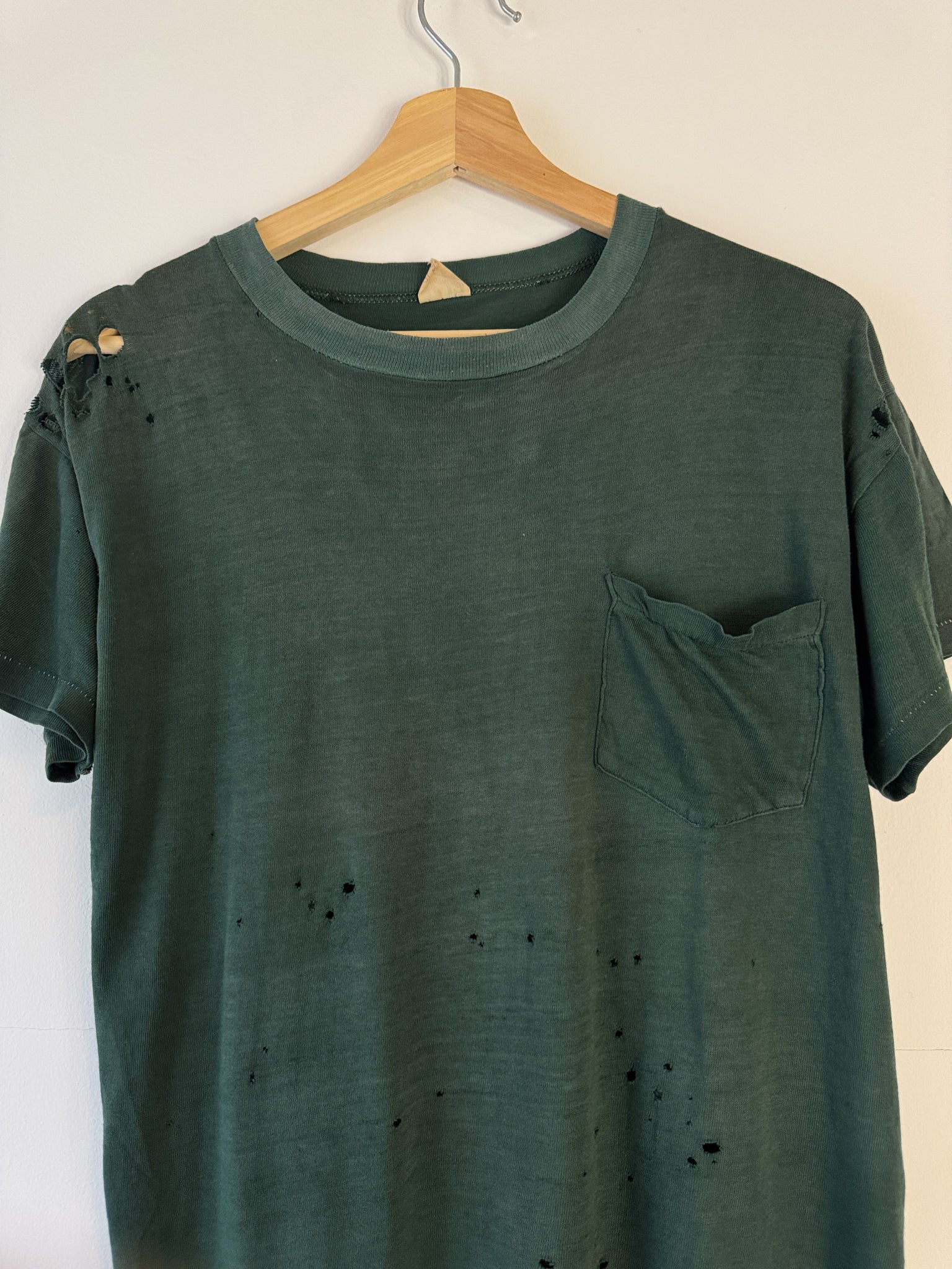 1960s Pennleigh Thrashed + Faded Green Pocket Tee (L)